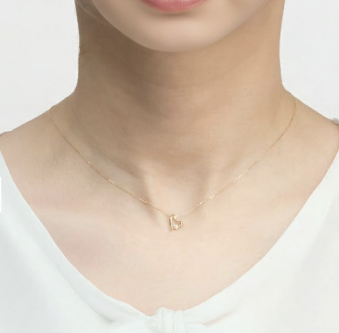 しなやかなラインで描かれたハートモチーフに、ひと粒のダイヤモンドをあしらったエレガントなゴールドネックレス。