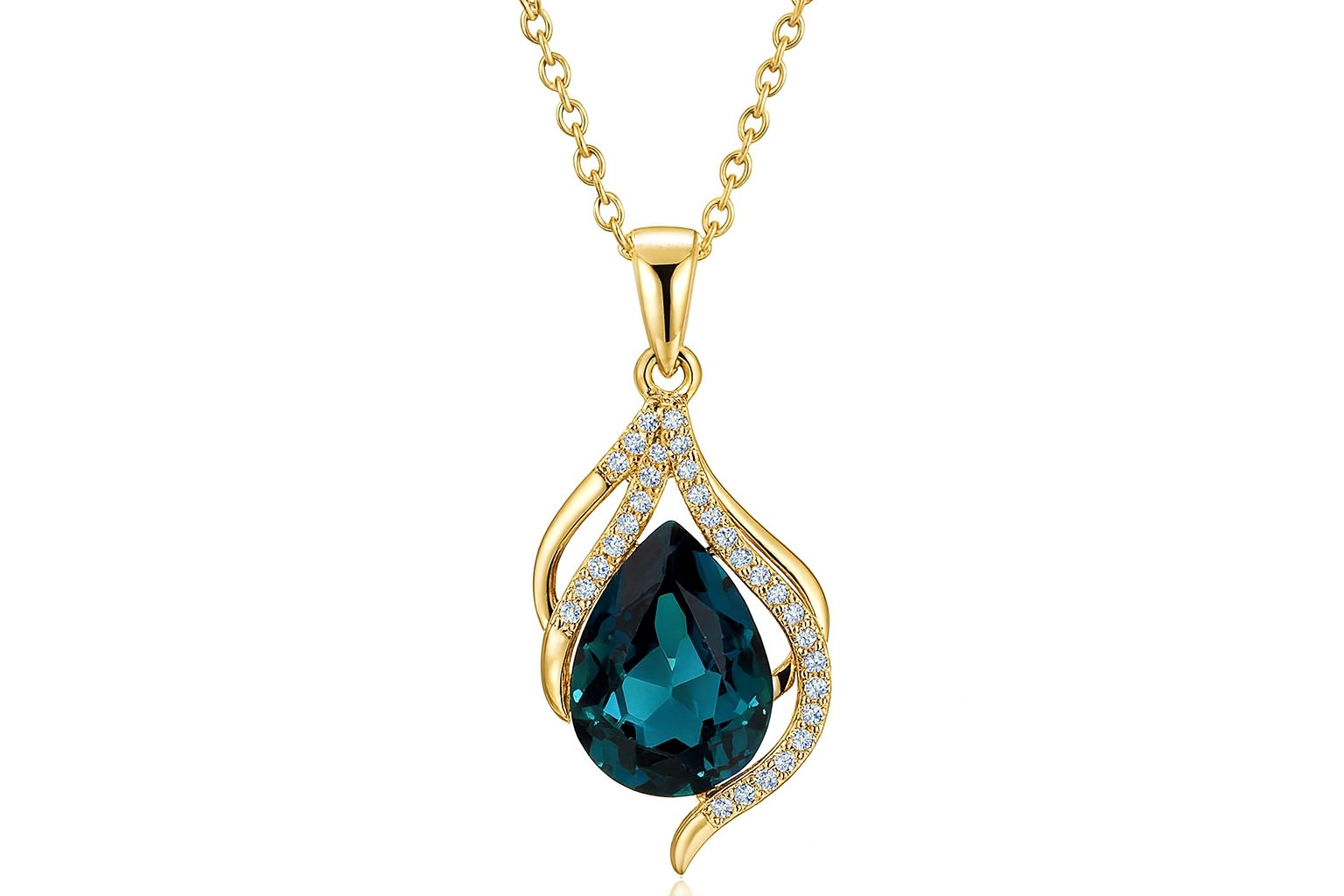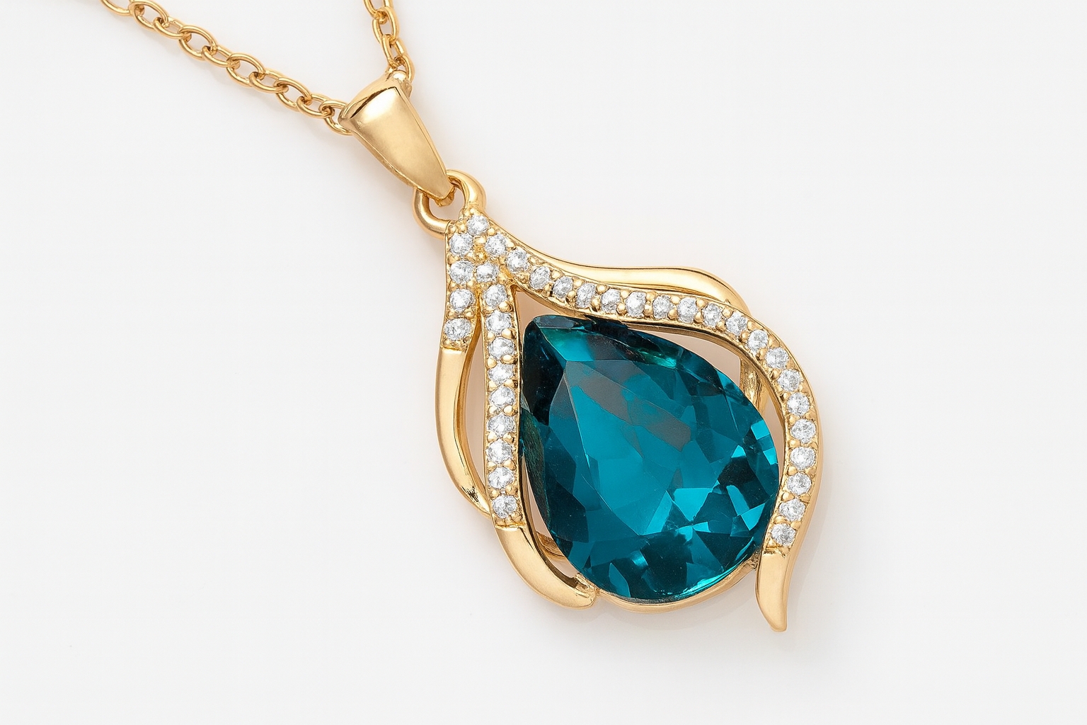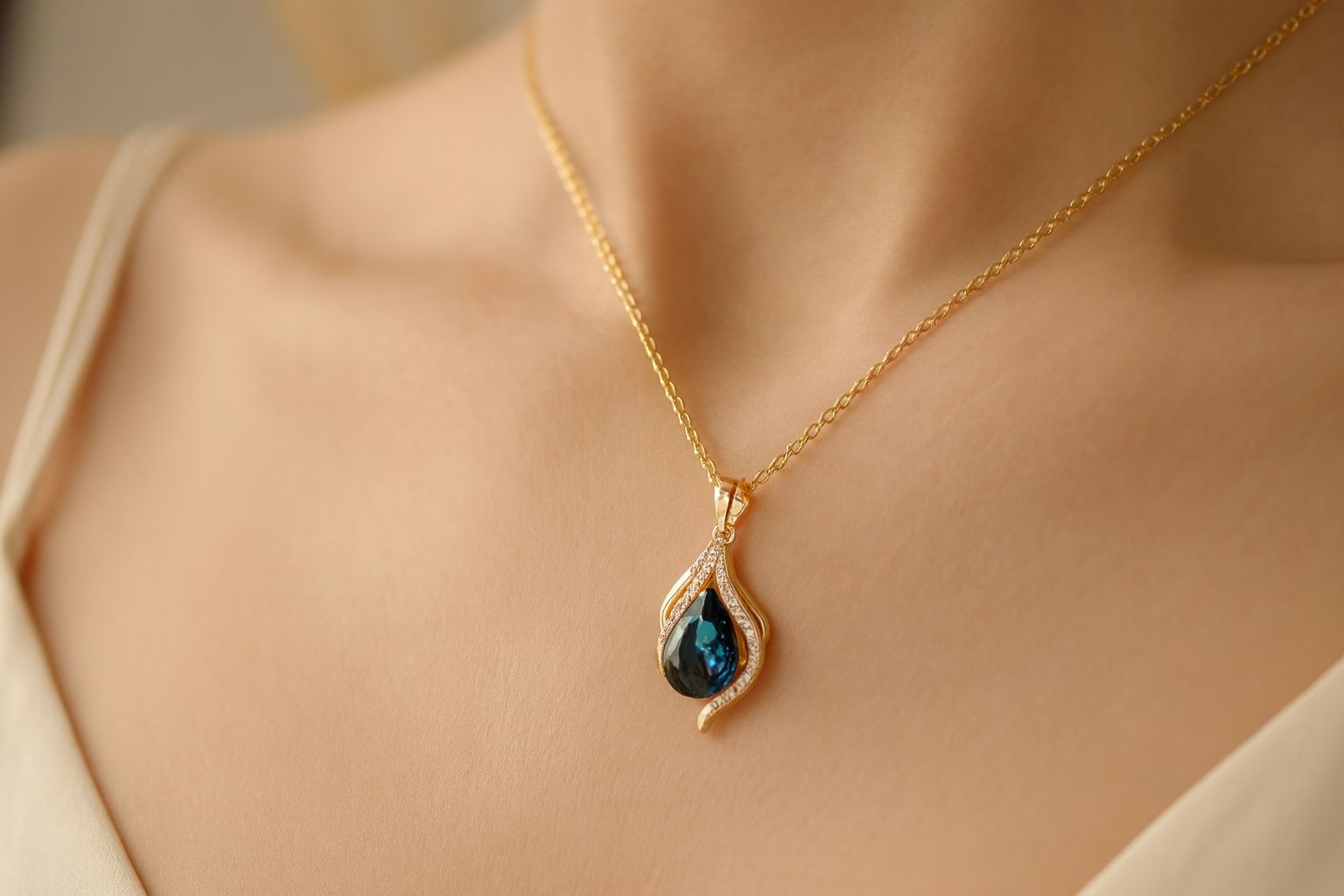 深いブルーのトパーズと煌めくダイヤが織りなす、優美なK18ペンダント。